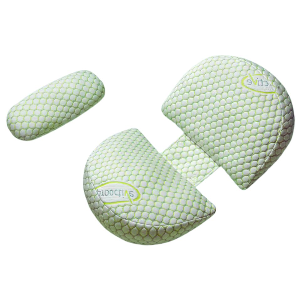 Le coussin peut être disposé de différentes manières selon les besoins : entre les jambes, derrière le dos ou sous le ventre. Chaque forme (modulable, classique ou en U) permet d’adapter le soutien à la position souhaitée.